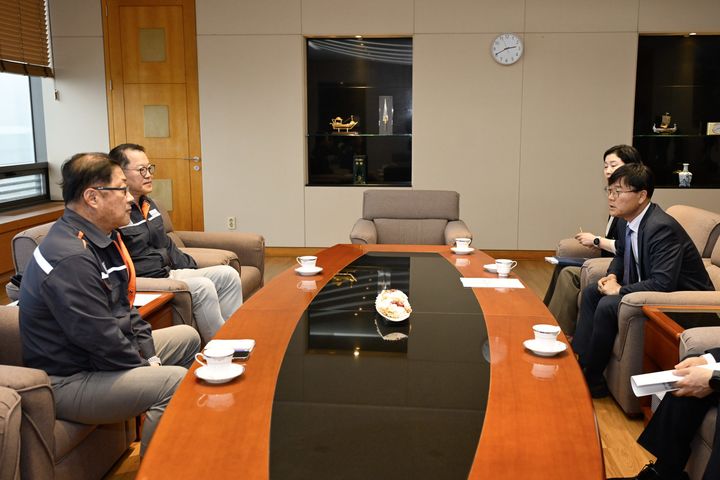 [거제=뉴시스] 신정철 기자 = 거제시가 지역 조선업계와의 상생협력 방안을 모색하기 위한 간담회를 연이어 개최하고 있는 가운데 22일 한화오션과 간담회를 열고 지역 협력 방안을 논의했다.