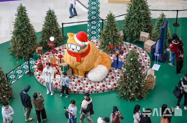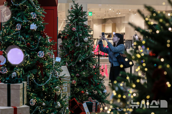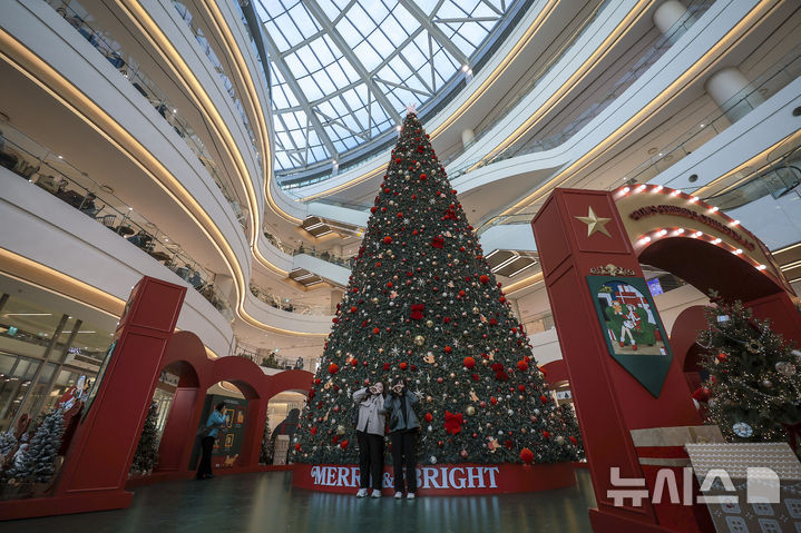 [서울=뉴시스]정병혁 기자 = 11월 첫 주말인 2일 서울 영등포구 타임스퀘어를 찾은 시민들이 대형 크리스마스 트리 앞에서 사진을 찍으며 즐거운 시간을 보냈다.