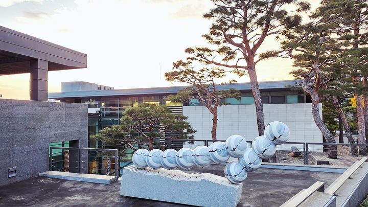 야외에는 5m 높이의 ‘무한 기둥–증식(2019)’과 ‘무한 기둥–연속(2025)’ 등 대형 작품이 관람객을 맞는다. 원래 그 자리에 있었던 듯, 가나아트센터의 풍경과 자연스럽게 어우러졌다.