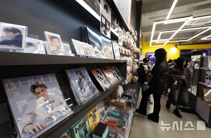 [서울=뉴시스]고범준 김진아 이주혜 기자 = 방탄소년단(BTS)의 컴백 공연을 계기로 서울 광화문과 명동 일대 유통가가 특수를 누리고 있는 22일 서울 중구 명동거리의 케이메카 명동본점에서 외국인들이 각종 제품을 살펴보고 있다.