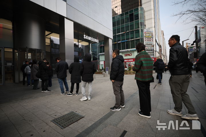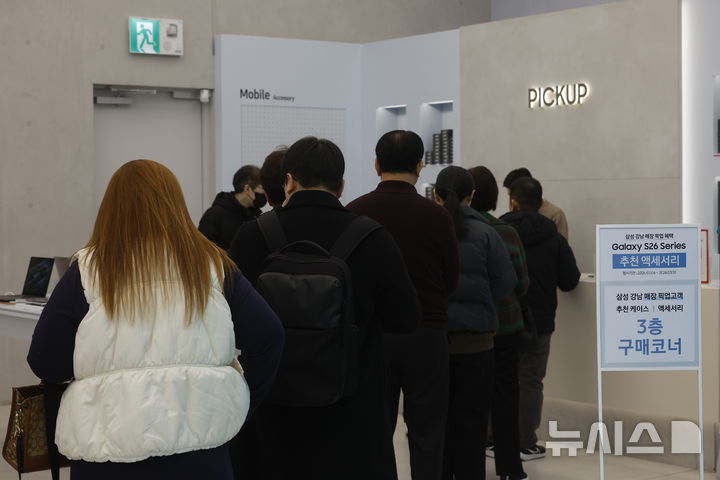 이날 서울 강남구 삼성 강남 앞에는 갤럭시S26 시리즈를 구매하기 위한 오픈런 행렬이 이어졌다.