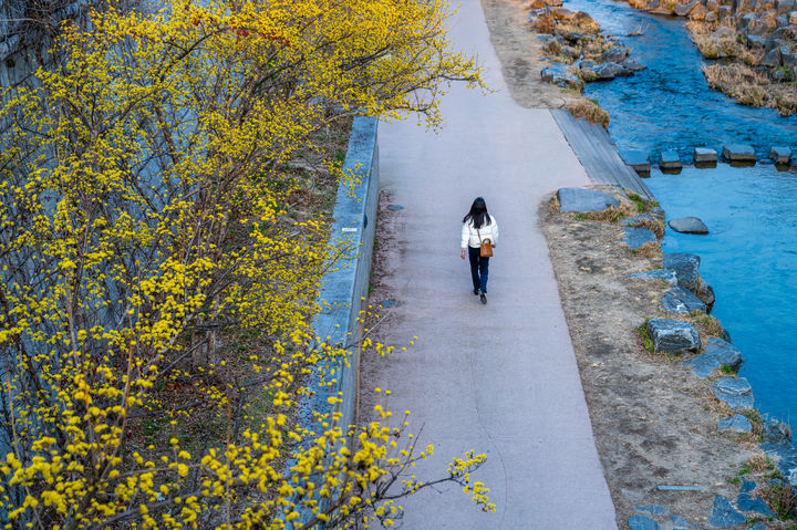 청계천을 따라 걷다 보면 노랗게 피어난 산수유가 봄을 알린다. 앙상한 가지마다 손톱만 한 꽃송이가 다닥다닥 매달려 있다. 자세히 들여다보면 그 모습이 마치 불꽃이 터지는 것 같다. 작은 꽃이 가지 전체로 퍼지며 황금빛 등불처럼 봄을 밝힌다.