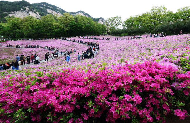 그런 산이 매년 4월이면 전혀 다른 표정을 짓는다. ‘철쭉동산’에 식재된 10만 그루 철쭉이 일제히 꽃을 피워 산을 ‘진분홍빛 천상의 화원’으로 바꾸기 때문이다.