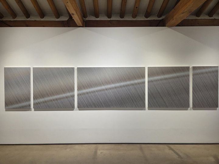 작가는 이 반복의 감각에 오래 붙잡혀 있었다. 끝없이 되풀이되는 행위 속에서 형태는 사라지고, 대신 감각만 남는다. 그가 집요하게 선을 긋는 이유도 거기에 있다. 반복이 만들어내는 아주 미세한 떨림, 그 안에서 비로소 회화가 살아 움직인다.