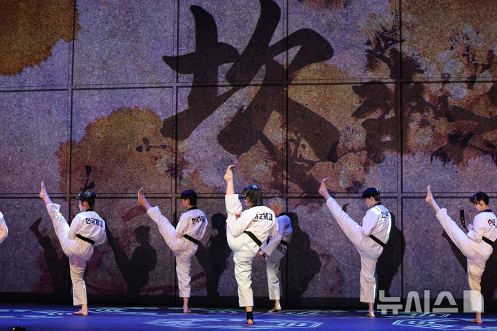 [서울=뉴시스]김주희 기자 = 공중제비는 물론, 송판 격파까지 거침없이 이뤄진다. 뮤지컬 ‘태권, 날아올라’가 역동적인 태권도 퍼포먼스에 서사와 음악이 어우러진 특별한 무대를 선보인다.