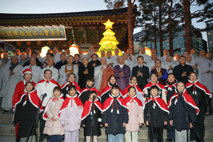 조계종은 18일 서울 종로구 조계사 일주문 앞에서 이웃 종교 지도자들을 초청해 ‘크리스마스트리 등 점등식’을 개최했다고 밝혔다.