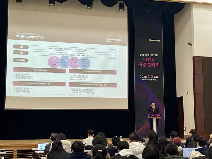 출판진흥원은 3일 서울 마포구 서울경제진흥원 SBA홀에서 ‘2026년 사업설명회’를 개최하고, 올해 정책 추진 사업을 공유했다. 이날 출판진흥원 관계자, 출판사, 에이전시 등 출판 관계자 등이 참석했다.