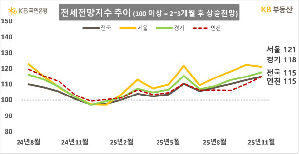 전국 주택 전세가격은 0.21% 상승했다. 수도권은 서울 0.31%, 인천 0.02%, 경기 0.28%로 모두 전월보다 오름폭을 소폭 키웠다.