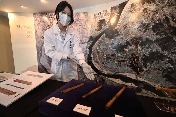 5일 국립부여문화유산연구소에서 열린 ‘부여 관북리 유적 출토 악기와 문자 성과 공개회’에서 종묘제례악 이수자 김윤희 씨는 제16차 발굴조사에서 발견된 횡적을 재현한 피리로 ‘수제천’을 연주했다. 수제천은 원래 ‘정읍(井邑)’이라는 백제가요에서 유래한 곡이다.