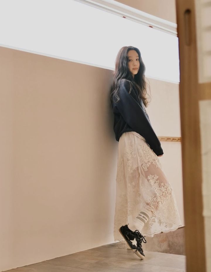 정려원은 바닥에 앉아 포즈를 취했다.