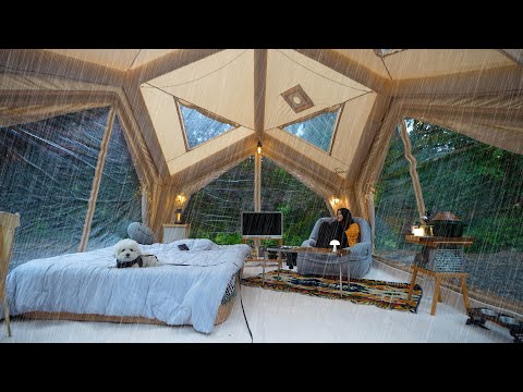 800m Mountain Camping with My Dog . Hot Tent . Wood Stove ASMR