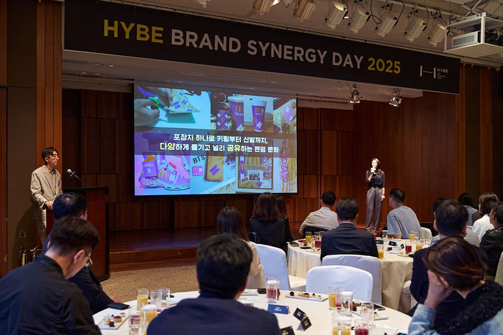 이승석 하이브 브랜드시너지본부 사업대표는 “행사에서 공유한 사례들은 지역과 세대를 막론하고 폭넓은 지지를 받고 있는 하이브 뮤직그룹 아티스트들의 영향력을 바탕으로, 파트너사와 아티스트 브랜드의 특성이 잘 부합해 더 큰 파급력을 발휘할 수 있었던 사례들”이라고 특기했다.