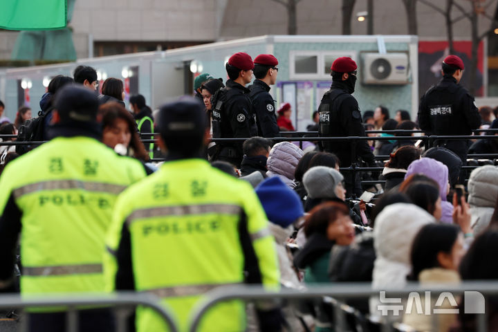 이날 공연장에 입장하는 관람객들은 신체 및 소지품 검사를 거치는 등 안전한 공연을 위해 경찰의 출입 통제가 이뤄졌다.